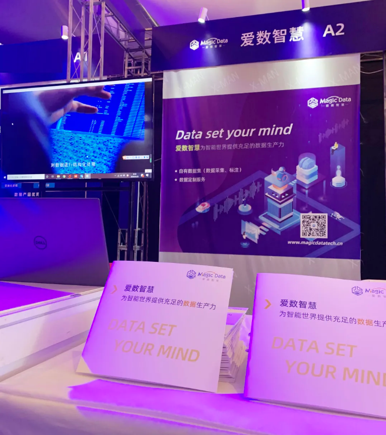 峰會的企業展會現場聚集大量智能行業創業者、投資者和推動者,而Magic Data作為人工智能企業的數據服務提供商,現場展示的系列數據集產品吸引觀眾廣泛關注。